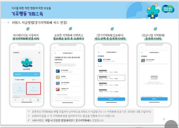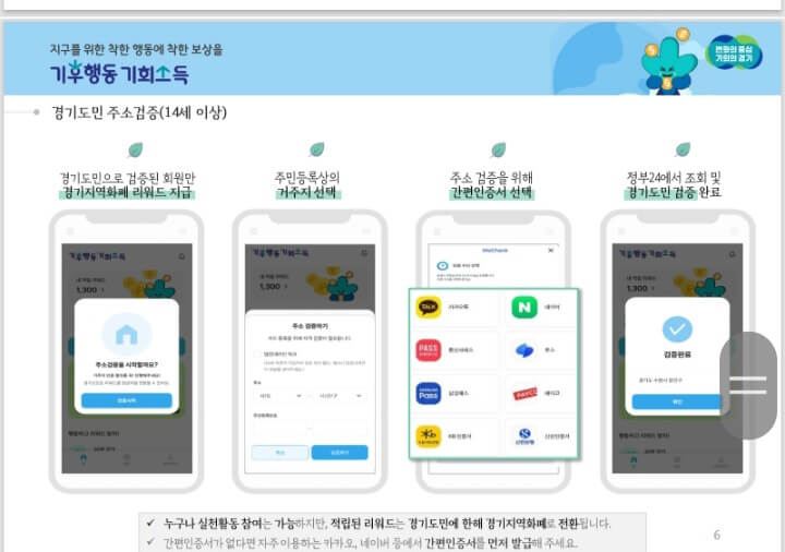 지구를 사랑하는 누구나 온실가스 저감을 위한 실천활동은 가능하지만, 적립된 기후행동 기회소득 리워드는 경기지역화폐로 전환됩니다. 서비스 이용에 착오 없으시기 바랍니다. *지급된 지역