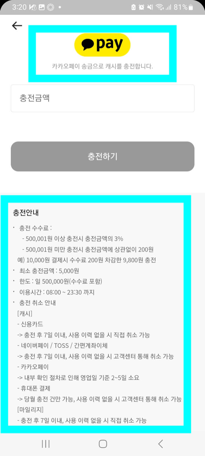 결제수단별 충전수수료 확인은