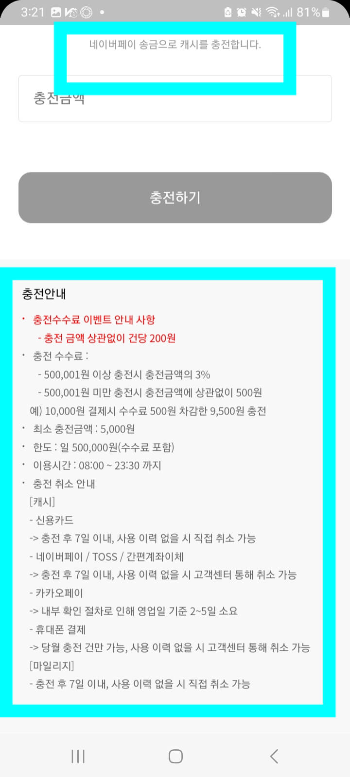1번 충전에 충전금액 상관없이 건당 200~ 500원 차감 또는 충전금액의 3% 수준이에요.