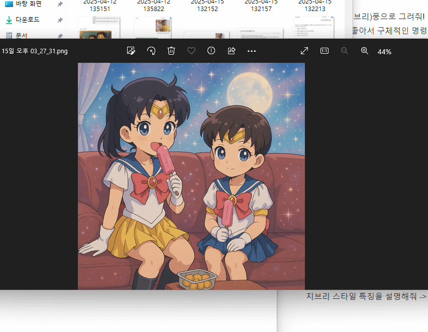 이 사진을 (지브리)풍으로 그려줘! 이렇게 한줄로 간단하게만 지침하니까